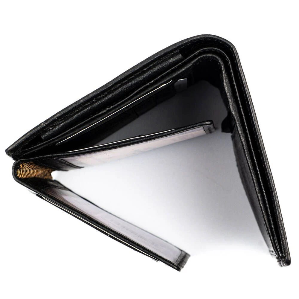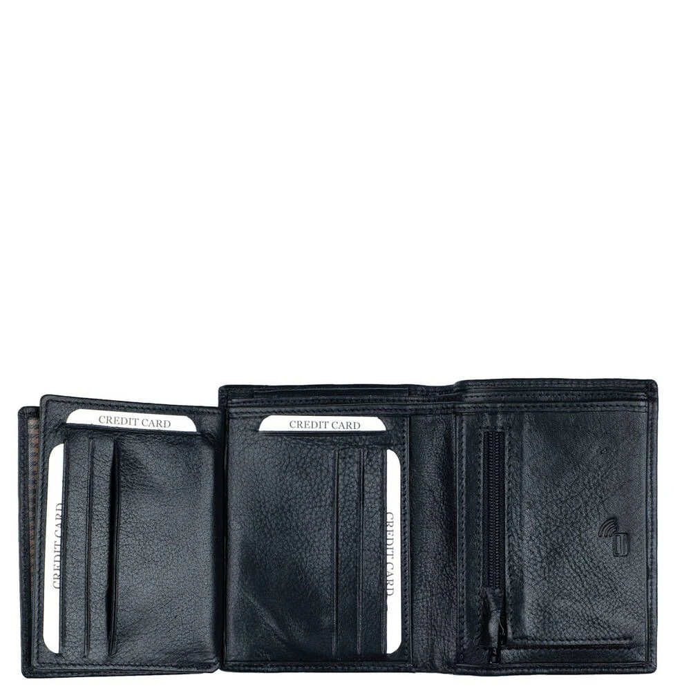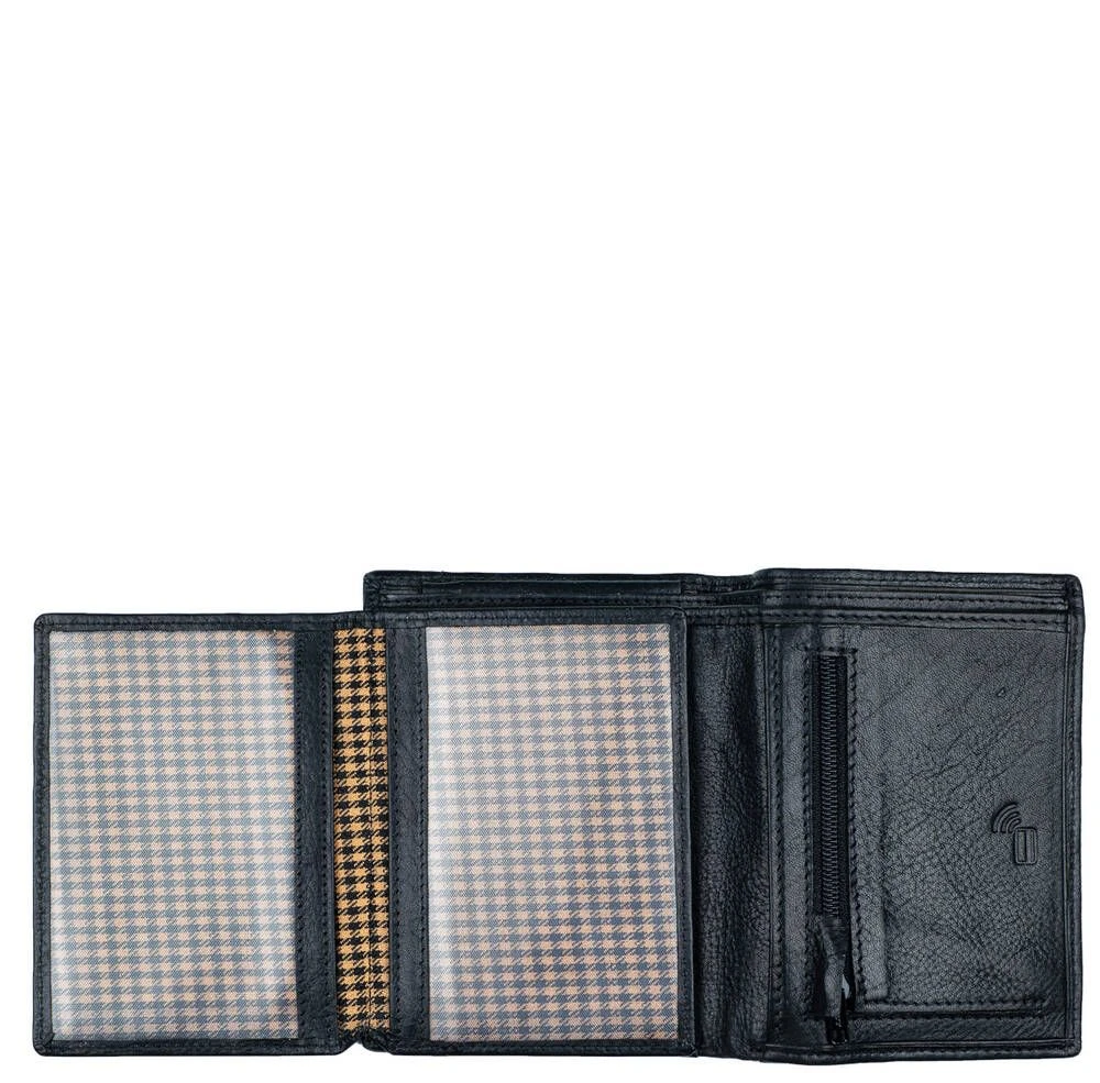 Monipuolinen RFID-suojattu nahkalompakko kauniilla leikkauksella tuotteen kannessa. Nahka on erittäin tukevaa, mutta silti pehmeää nahkaa. Lompakossa on kaksi erillistä vasemmalle taittuvaa läppää, joissa molemissa ikkunallinen tasku ja toisella puolella neljä korttipaikkaa, näiden alla vielä neljä korttipaikkaa lisää. Lompakossa yhteensä 14 korttipaikkaa, joista ikkunallisiin mahtuu myös vanhan mallinen ajokortti. Lisäksi pari muuta taskua, taustalla kaksioisanen seteliväli ja vetoketjullinen kolikkotasku.