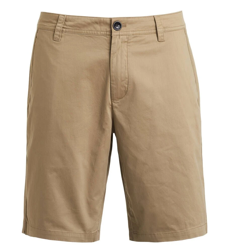 Tyylikkäät chino-tyyliset shortsit etu- ja takataskuilla. Toisen etutaskun sisällä on pienempi kolikkotasku. Aavistuksen joustava materiaali parantaa istuvuutta ja lisää käyttömukavuutta.