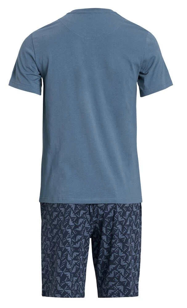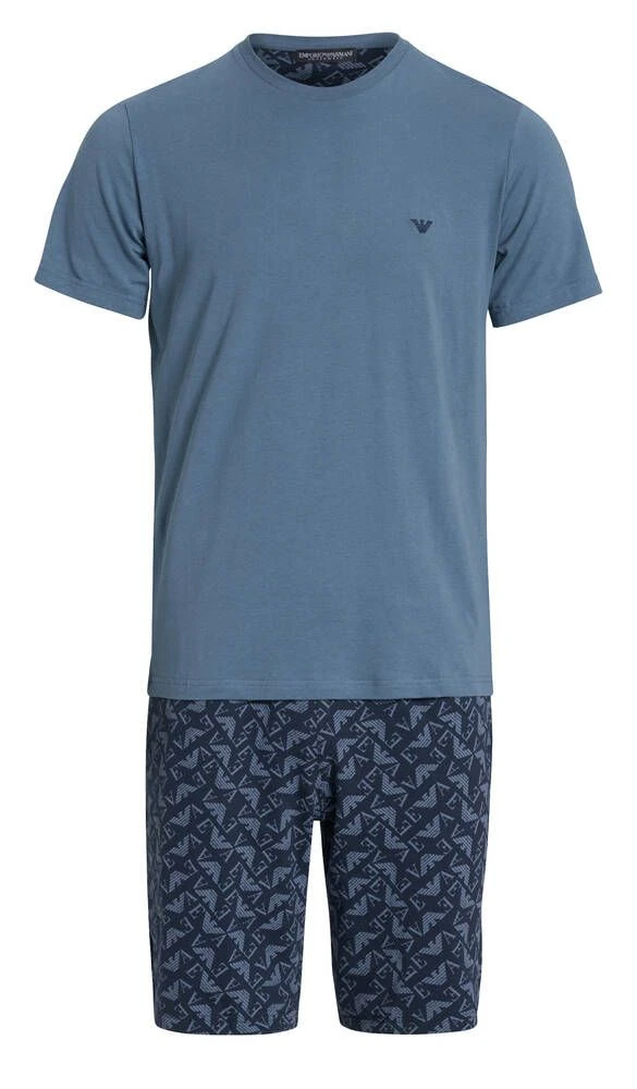 Mukava shortsipyjama yksivärisellä yläosalla ja kuosillisella alaosalla. Shortseissa on Emporio Armani-tekstilogolla koristeltu kuminauhavyötärö.