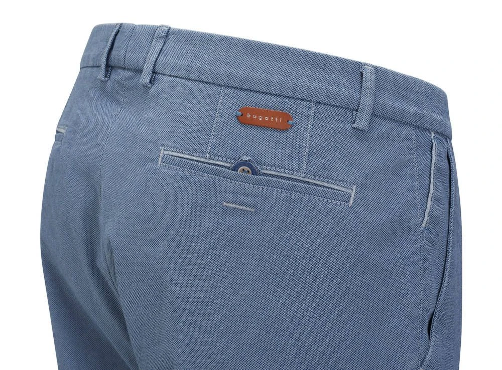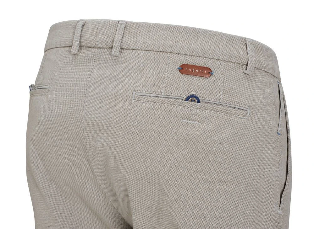 Chino-malliset siistit housut pienellä kuviolla. Modern fit -mitoituksen housuissa on sekä etu- että takataskut.