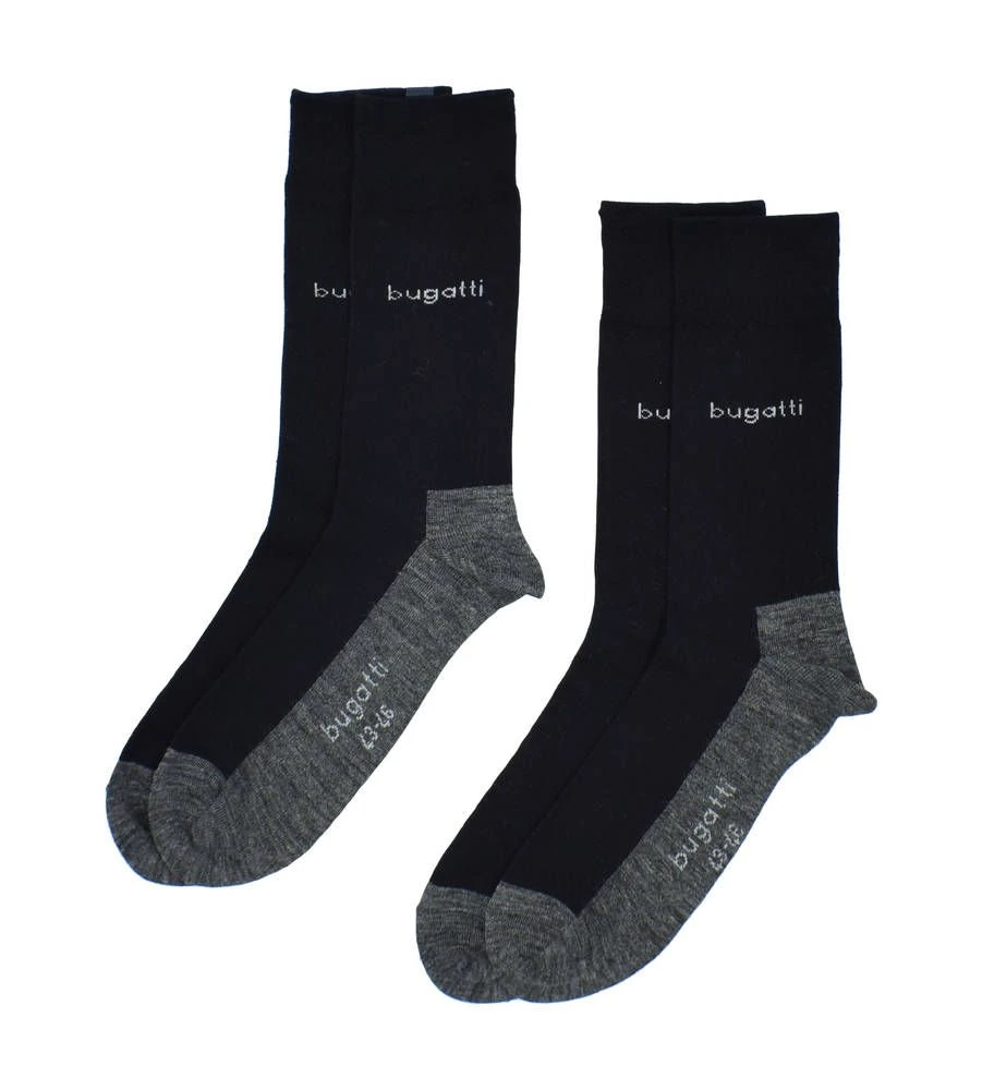 Pitkävartiset sukat puristamattomalla resorilla. Nämä sukat sopivat normaaliin arkikäyttöön, sillä ainoastaan sukan harmaat pohjat ovat lämmintä villaa. Kahden parin pakkaus.