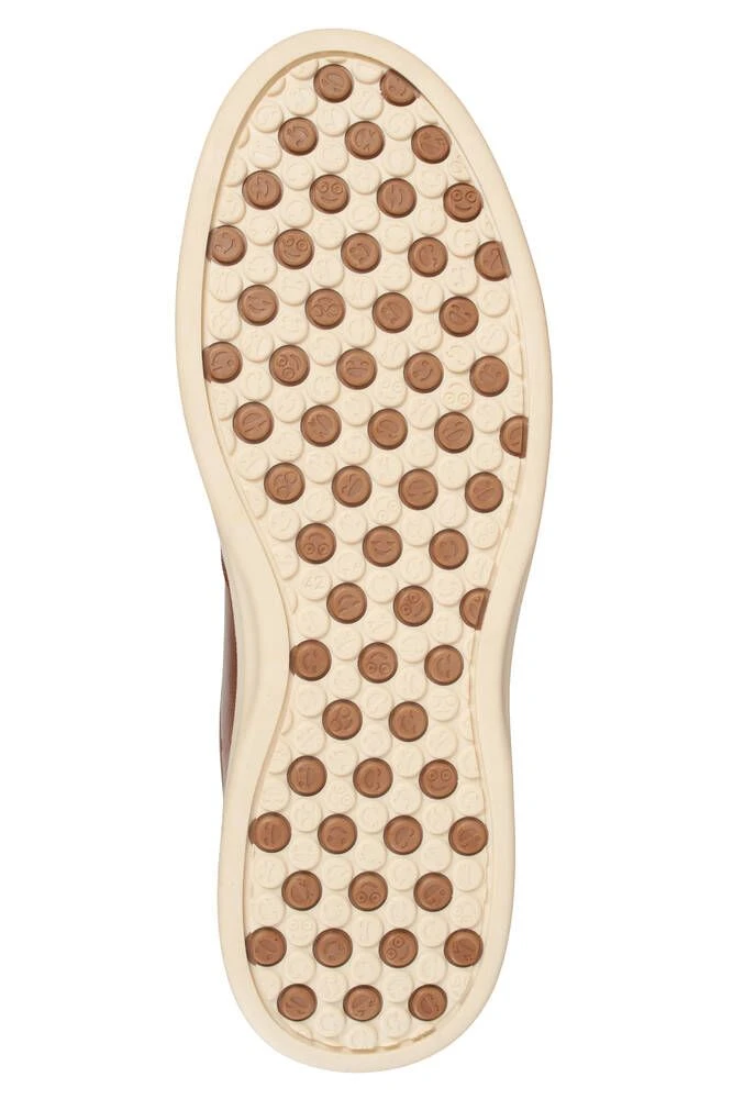Nahkapintaiset tennarit vaalealla pohjalla.