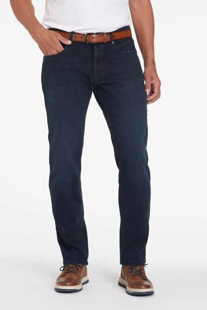Miesten rennot farkut tyylikkäässä tummansinisessä pesussa.