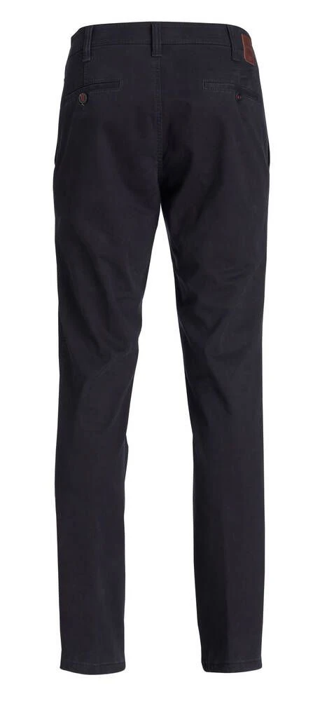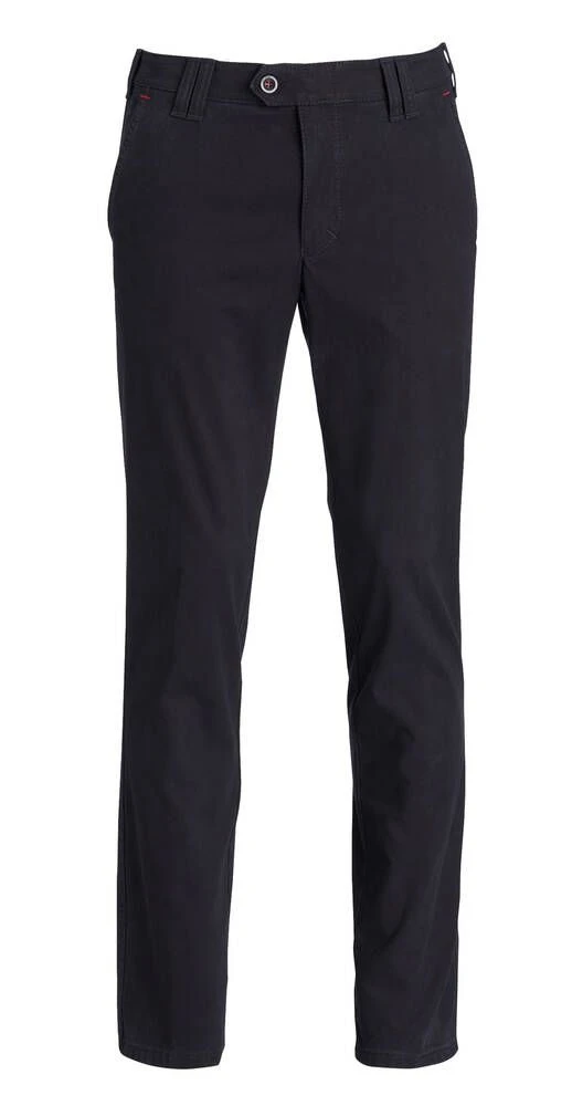 Miesten suoralahkeiset housut etu- ja takataskuilla. Housujen vyötärönauha on mukavan joustava. Vyötärön sisäosan paitastopperi sekä housujen joustava ja pehmeä materiaali lisäävät käyttömukavuutta.