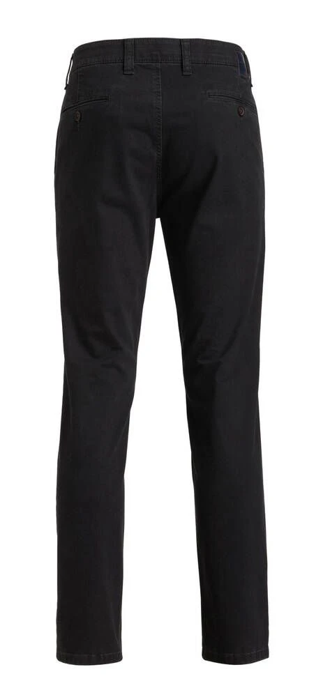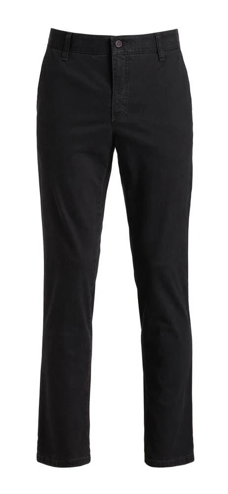 Miesten suoralahkeiset housut etu- ja takataskuilla. Housujen vyötärönauha on mukavan joustava. Vyötärön sisäosan paitastopperi sekä housujen joustava materiaali lisäävät käyttömukavuutta.