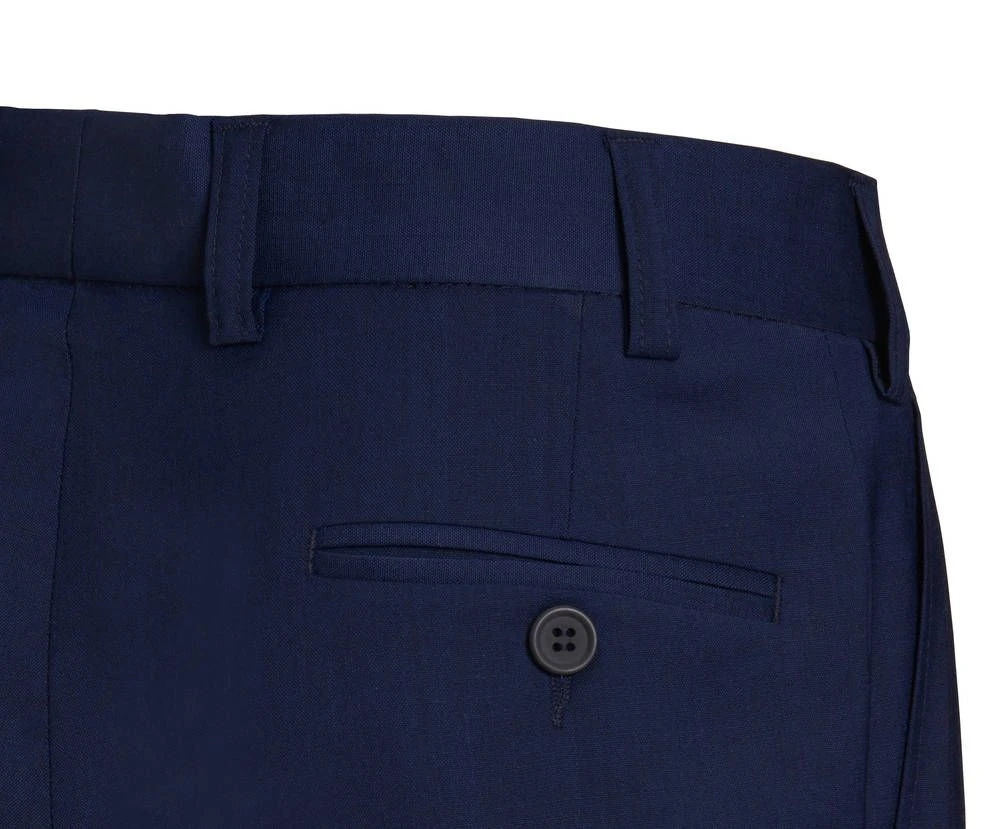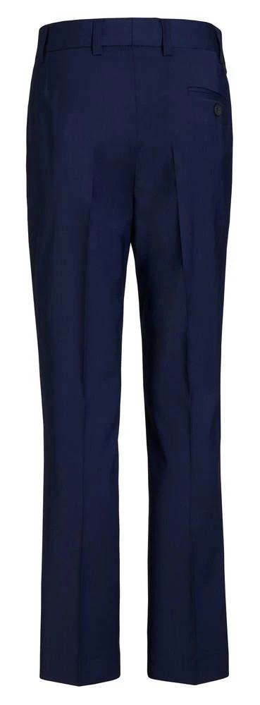 Poikien villasekoitteiset kapealahkeiset puvunhousut. Housujen etupuolella on kaksi tilavaa avotaskua ja takana yksi napillinen tasku. Vyötäröllä on vyölenkit. Tyylikkään kokonaisuuden saat yhdistämällä housut puvuntakkiin 194419 ja liiviin 194415.