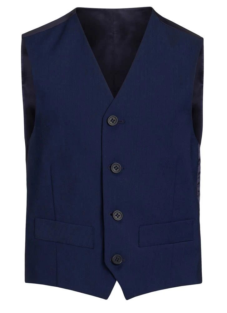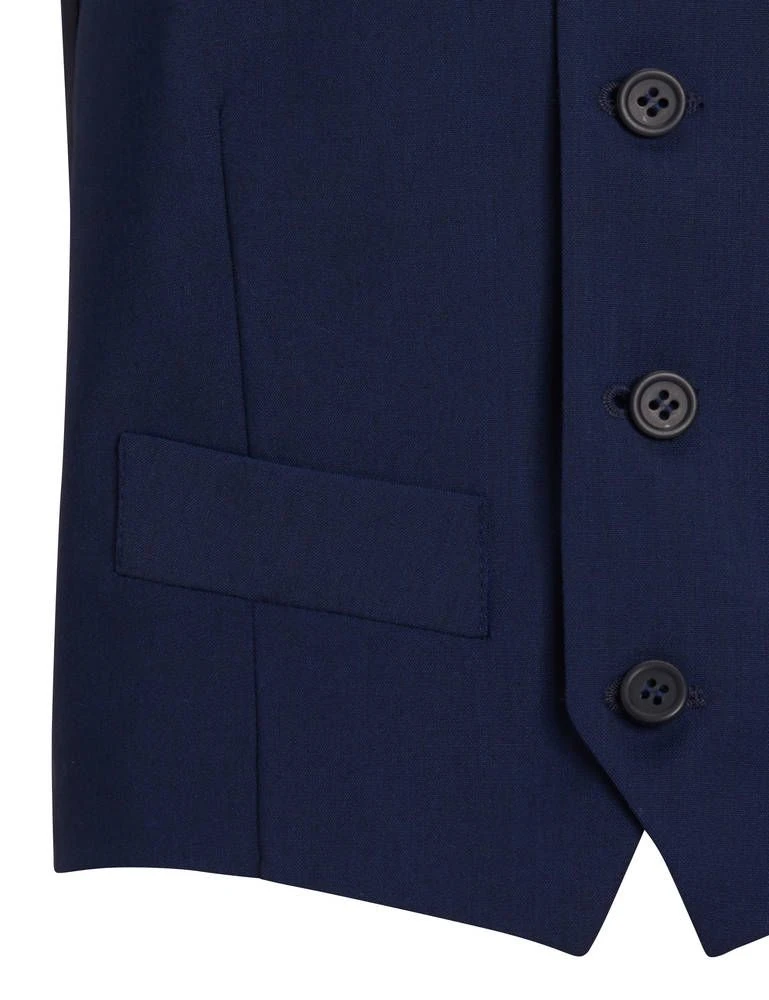 Poikien villasekoiteliivi nappikiinnityksellä. Liivin etupuolella on kaksi pientä avotaskua ja selkäpuoli on kiiltävää satiinia. Tyylikkään kokonaisuuden saat yhdistämällä liivin puvuntakkiin 194410 ja housuihin 194414.