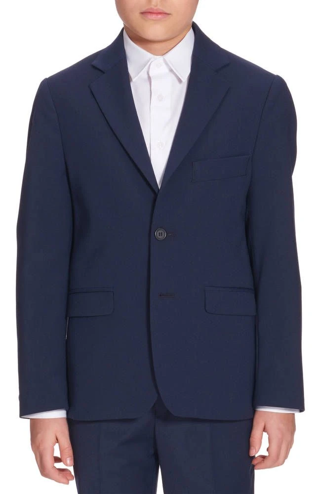 Tyylikäs sininen villasekoitetakki nappikiinnityksellä. Takin etupuolella on kaksi läppätaskua ja sisäpuolella povitasku. Selkäpuolelta löytyy keskihalkio. Malli on kokoa 140 ja käyttää takista kokoa 134. Koon 134 rinnanympärys 80 cm, vyötärönympärys 76 cm ja keskitakapituus 58 cm.