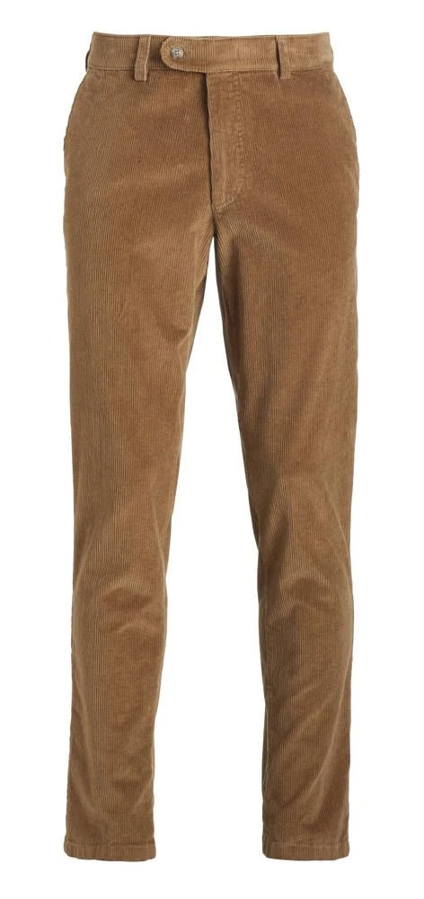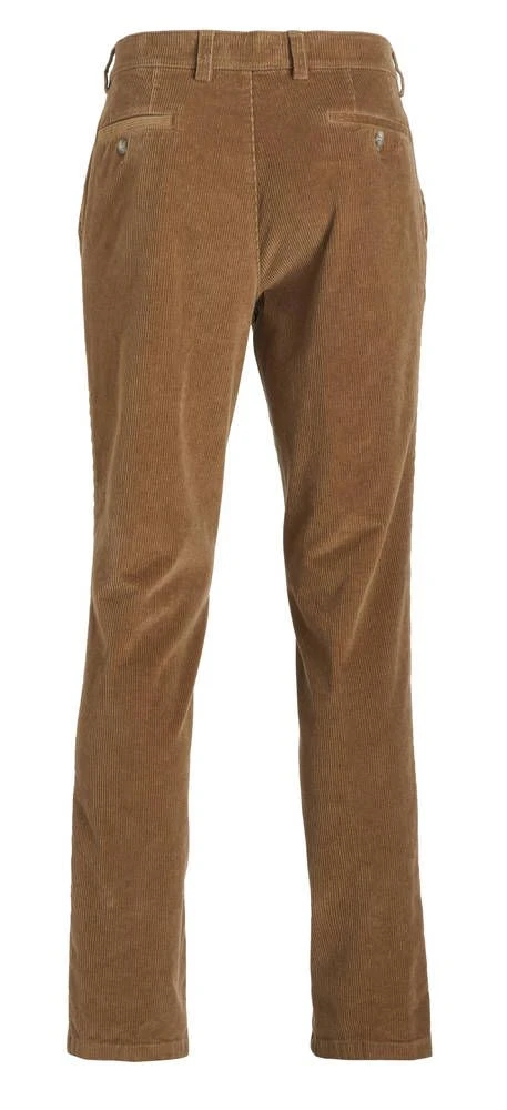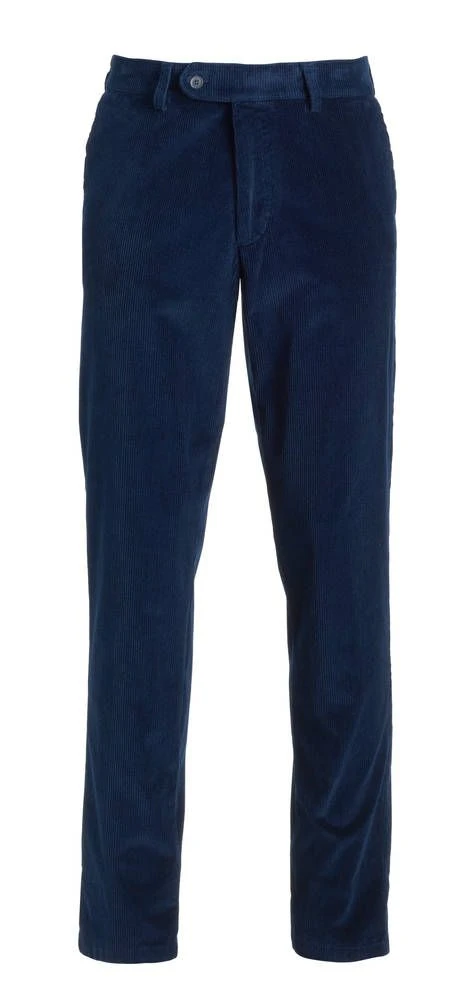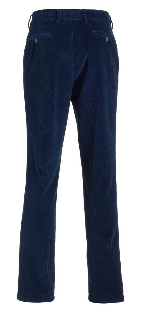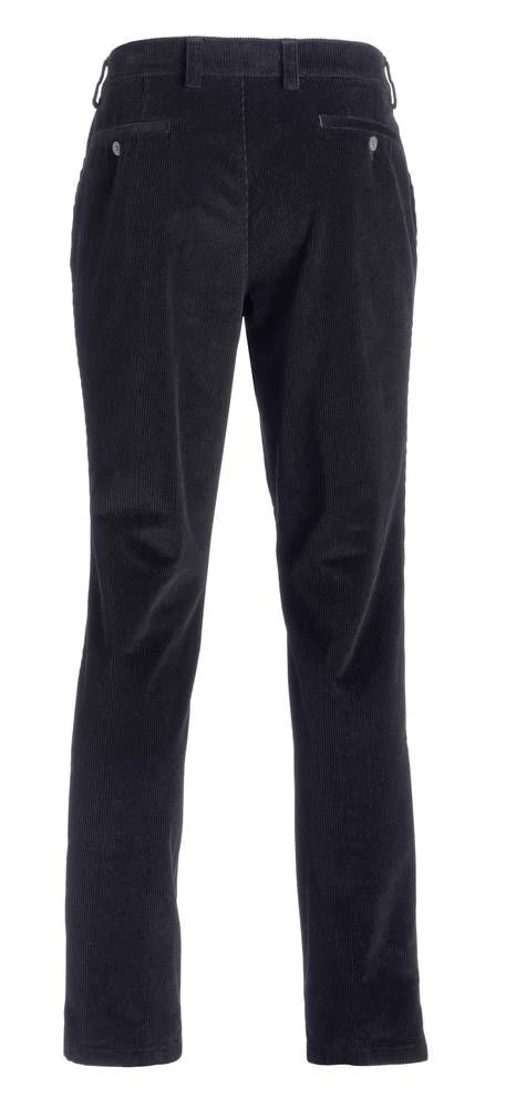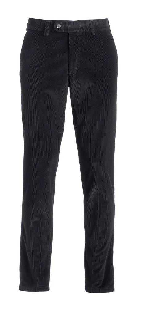 Siistit vakosamettihousut korkealla vyötäröllä. Hieman joustavien housujen etupuolella on tilavat avotaskut ja takana napilliset taskut.