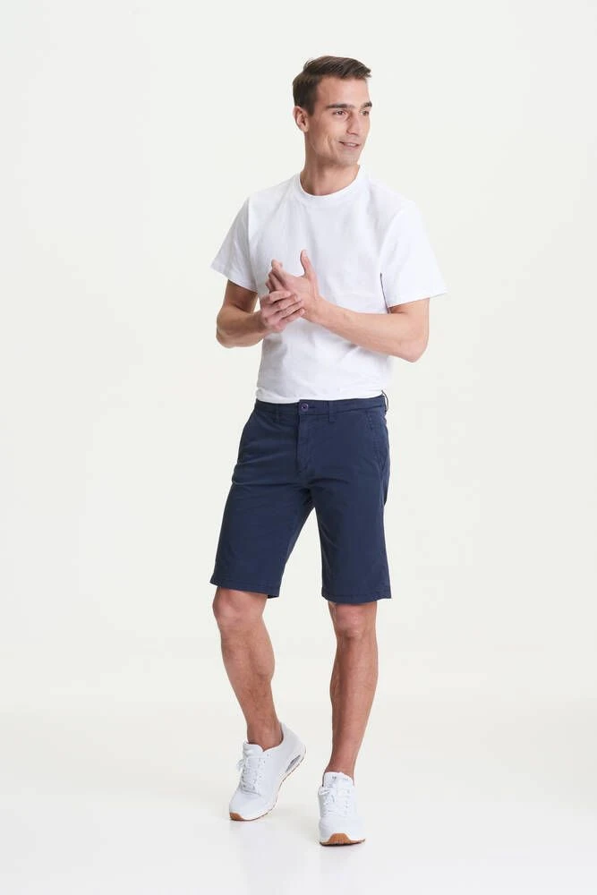 Kevyet puuvillashortsit tilavilla etutaskuilla ja avonaisilla takataskuilla. Yksiväristen shortsien lahkeet saa halutessaan käärittyä tyylikkäästi lyhyemmiksi.