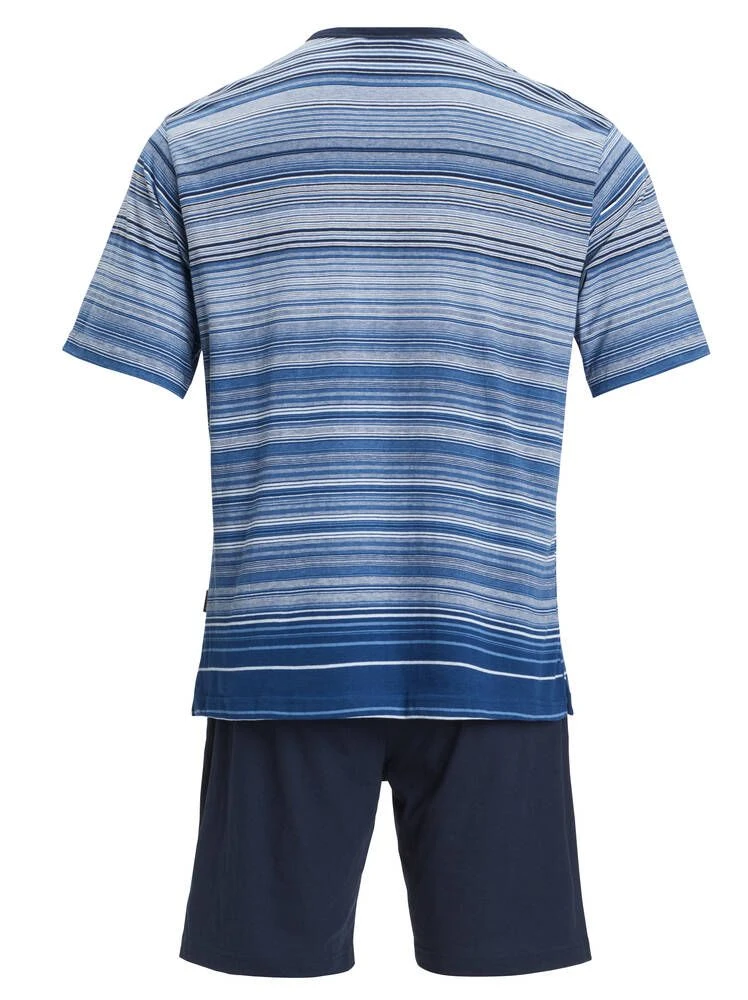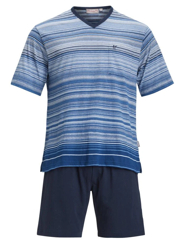 Mukava pyjama raidallisella yläosalla ja yksivärisellä alaosalla.