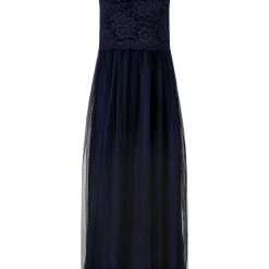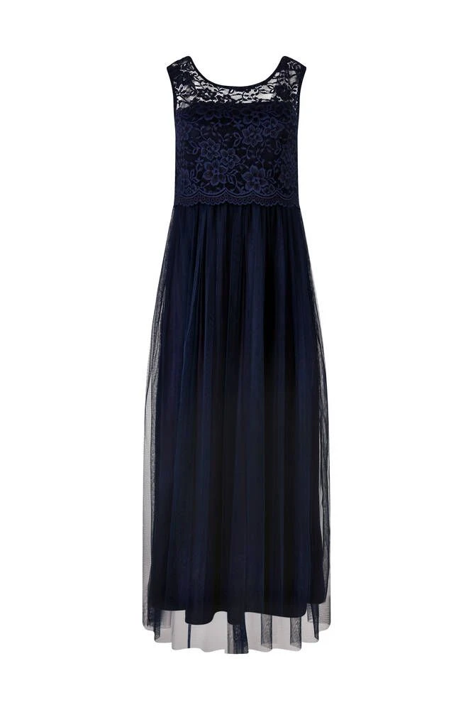 Lasten pitkä juhlamekko pitsisellä yläosalla ja tyllihelmalla.