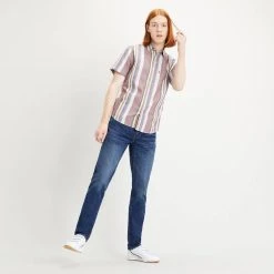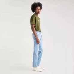 Miesten suoralahkeiset farkut nappikiinnityksellä.