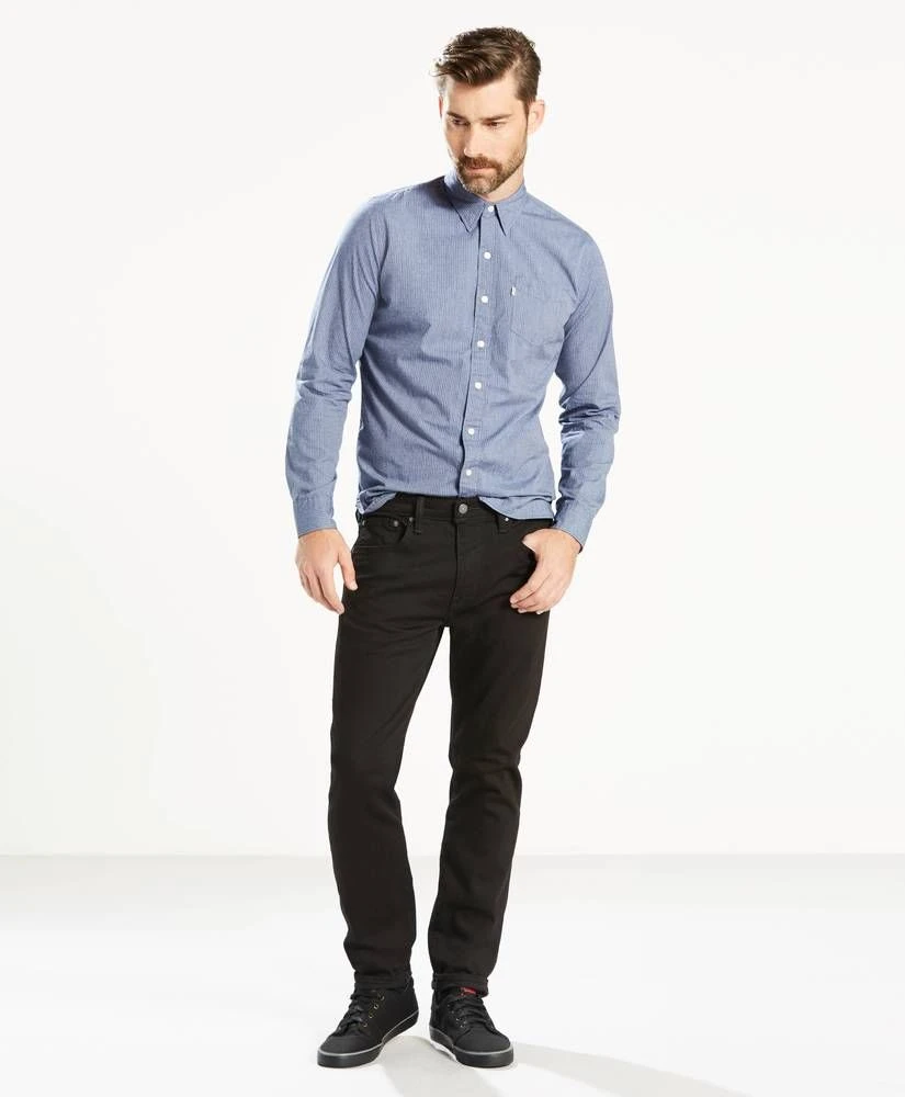 Leviksen 502 -farkut. Kapenevalahkeiset 5-taskufarkut, joissa on ylhäällä hieman reilummin tilaa. Joustava mutta kestävä denimkangas.