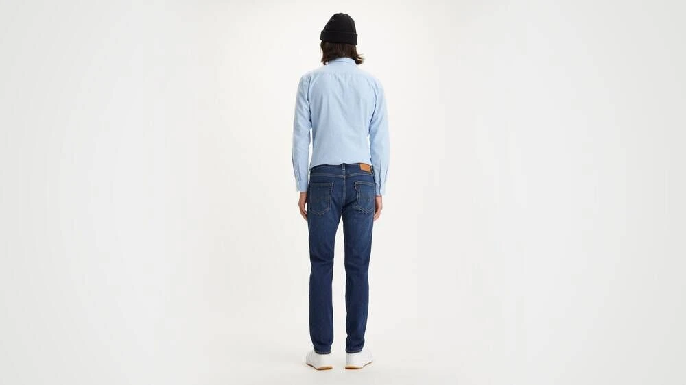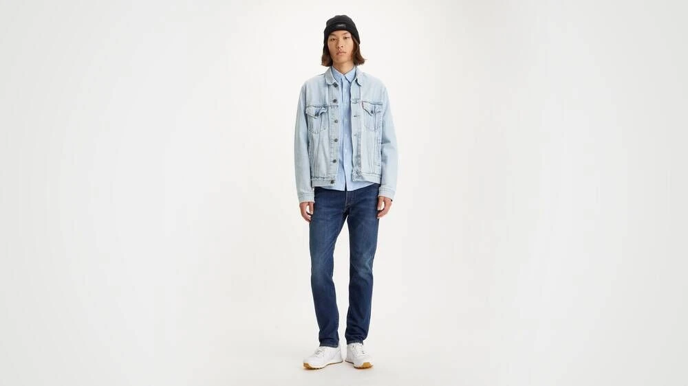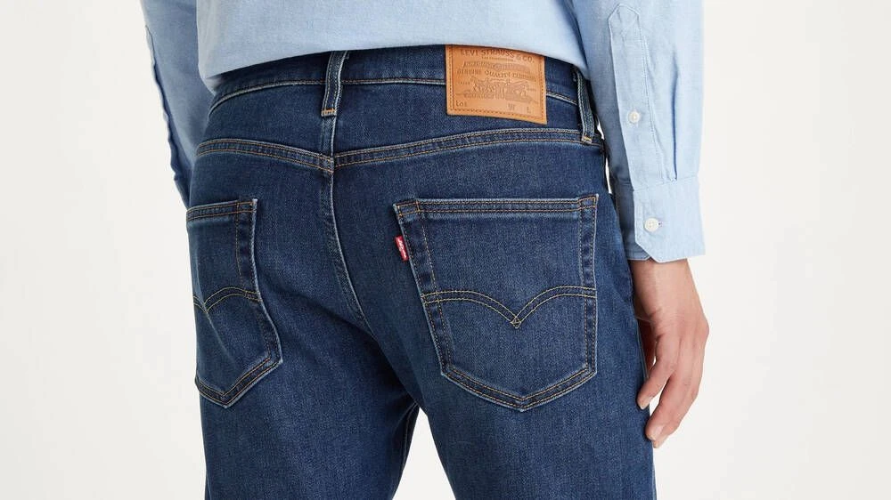 Miesten farkut kapenevilla lahkeilla. Farkuissa on vetoketjukiinnitys.