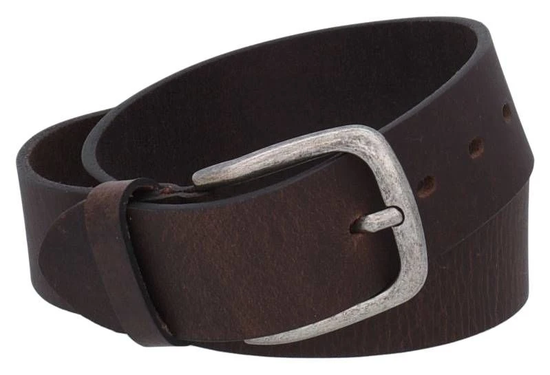 Rento ja kestävä nahkavyö solkikiinnityksellä.