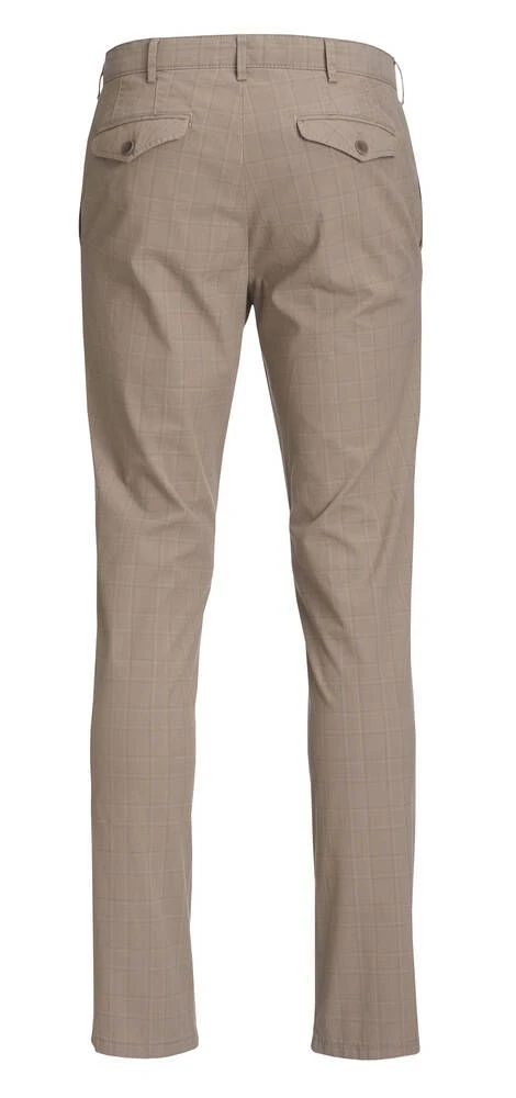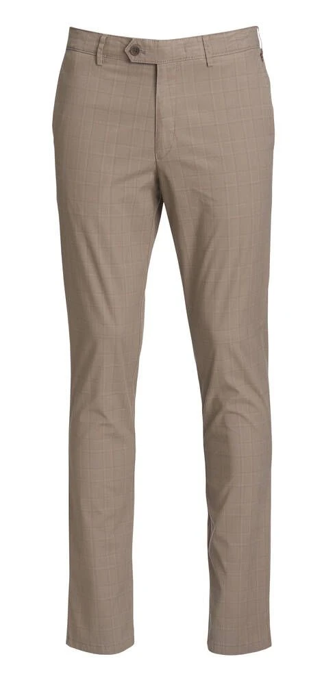 Tyylikkäät ruudulliset housut etu- ja takataskuilla. Joustava materiaali lisää käyttömukavuutta.