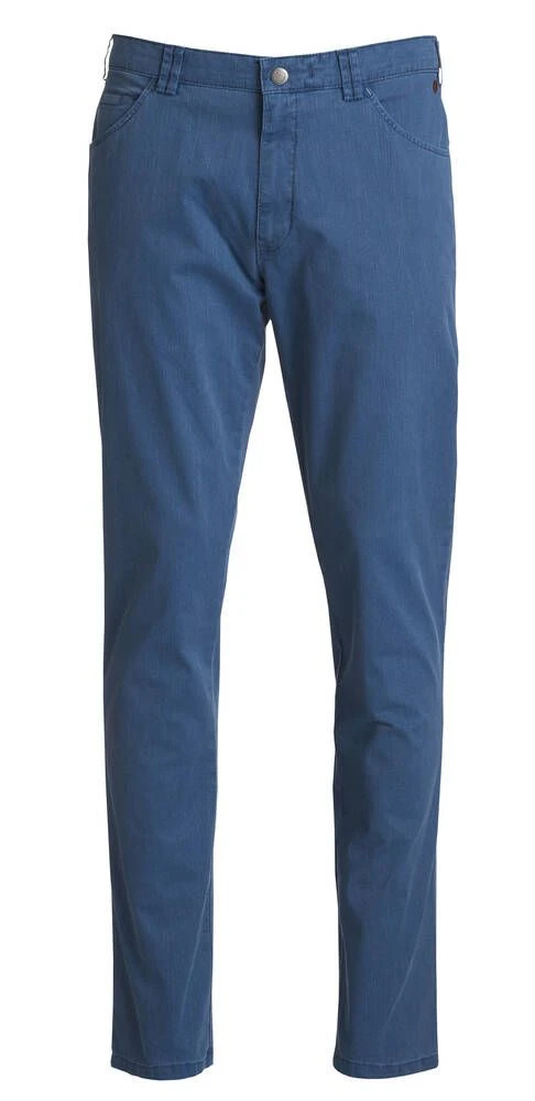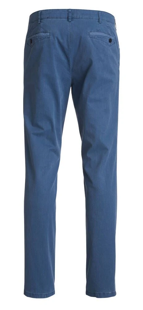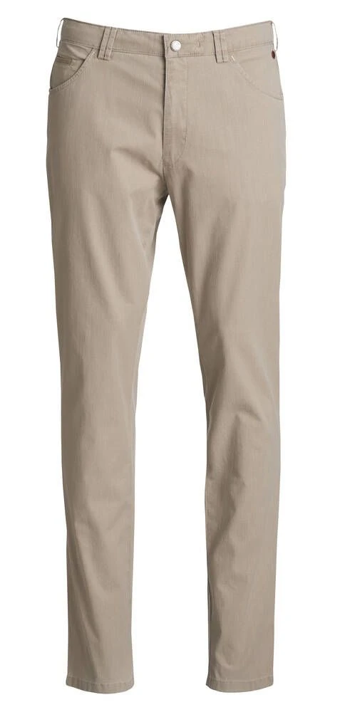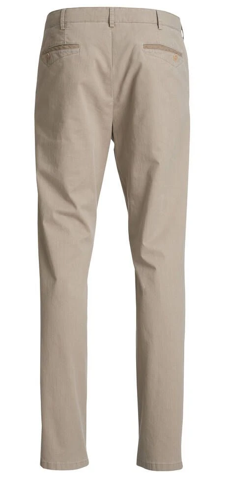 Miesten siistit housut etu- ja takataskuilla. Toisen etutaskun sisällä on vetoketjullinen turvatasku.