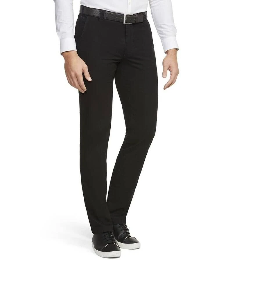 Siistit yksiväriset puuvillahousut etu- ja takataskuilla. Toisen etutaskun sisällä on vetoketjullinen turvatasku. Joustava materiaali parantaa housujen istuvuutta ja lisää käyttömukavuutta.