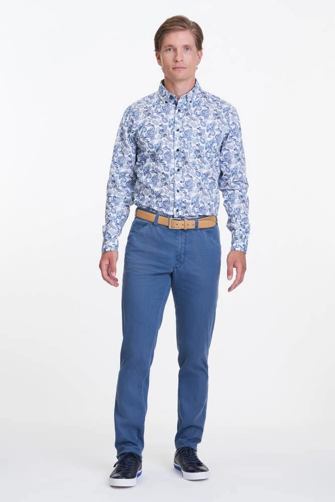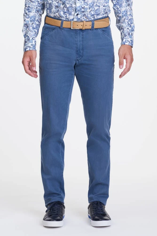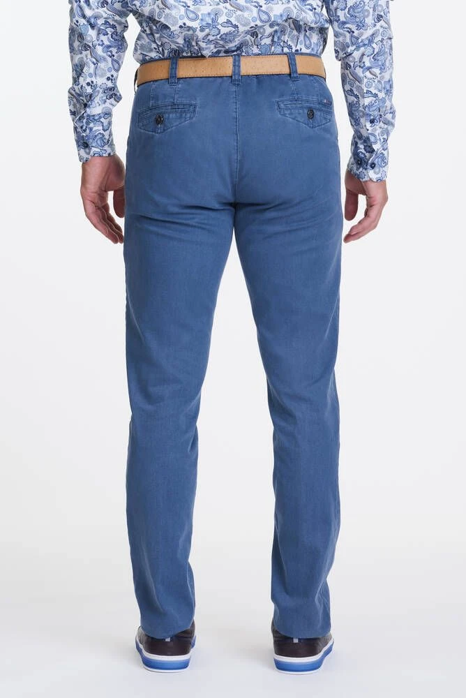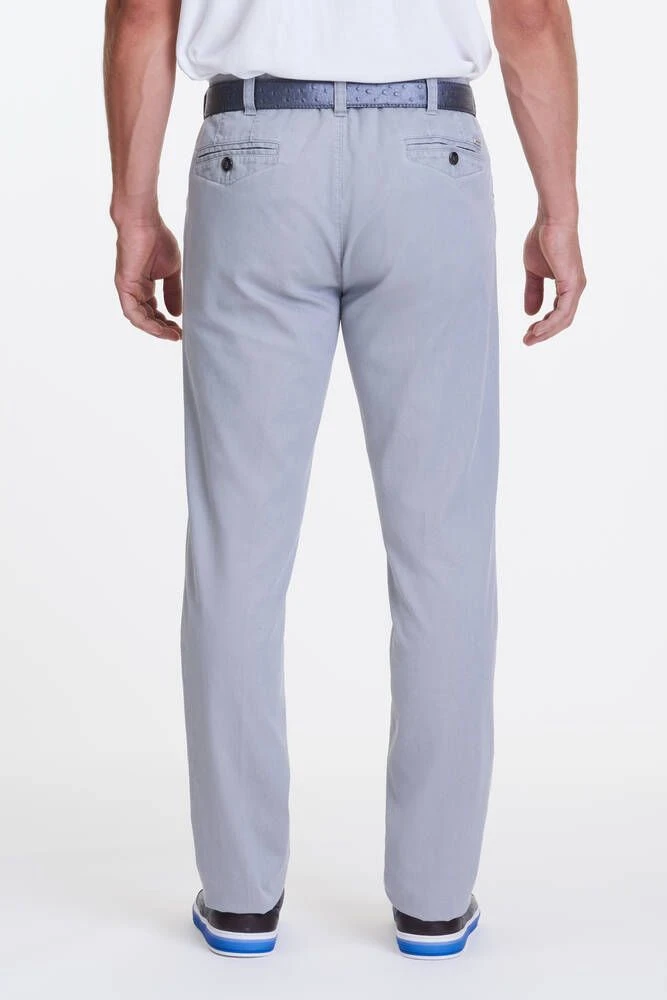 Keyvet puuvillahousut etu- ja takataskuilla. Toisen etutaskun sisäpuolella on vetoketjullinen turvatasku. Aavistuksen joustava materiaali lisää käyttömukavuutta.