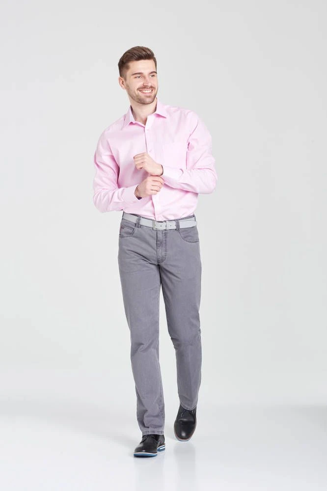 Tyylikkäät puuvillahousut etu- ja takataskuilla sekä leveähköllä lahkeella. Oikeassa etutaskussa on kätevä pieni kolikkotasku ja vasemman taskun vuorikankaassa vetoketjullinen turvatasku. Joustava materiaali lisää käyttömukavuutta.