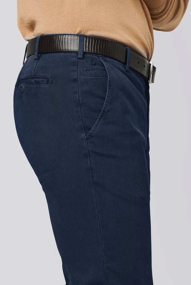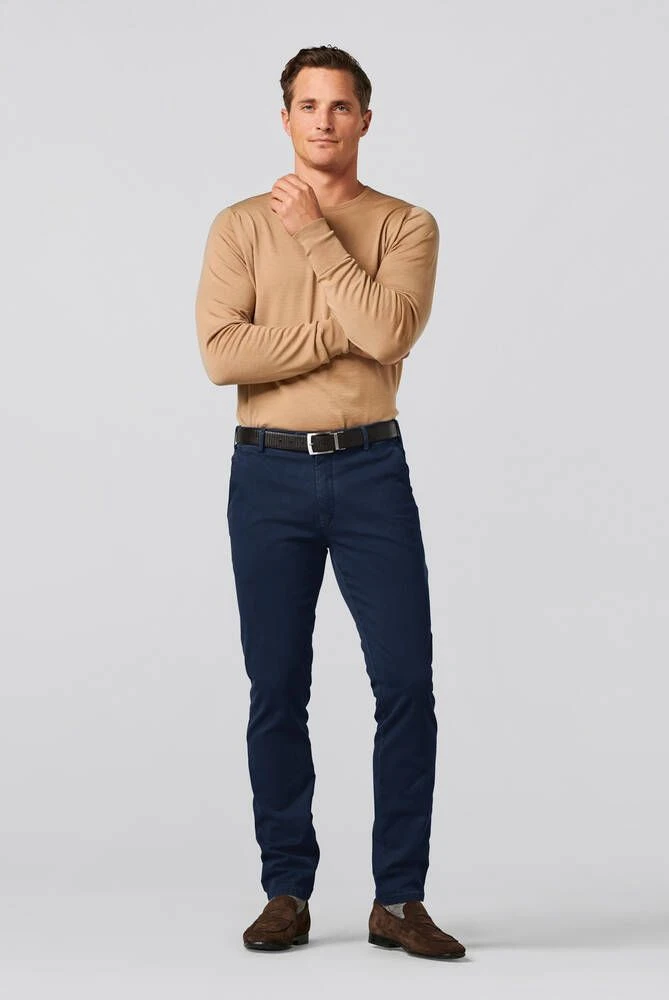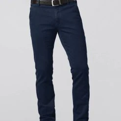 Miesten tyylikkäät puuvillahousut etu- ja takataskuilla. Joustava materiaali parantaa istuvuutta ja lisää käyttömukavuutta.