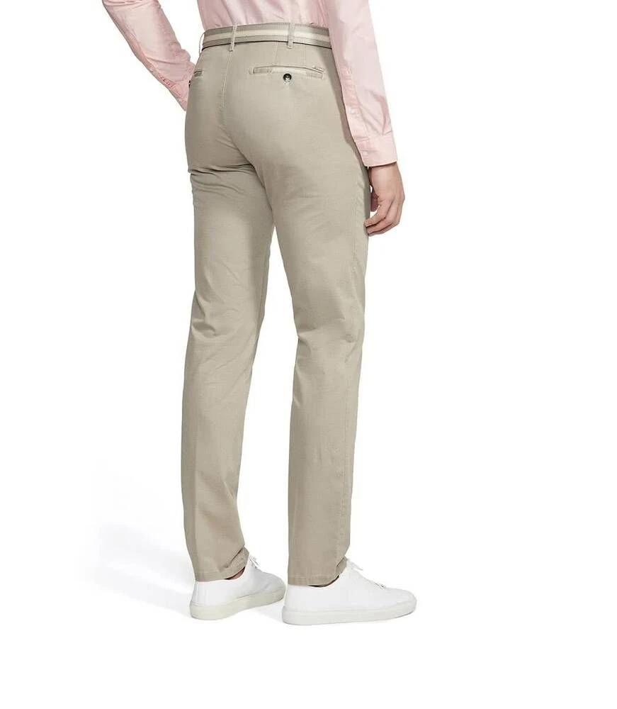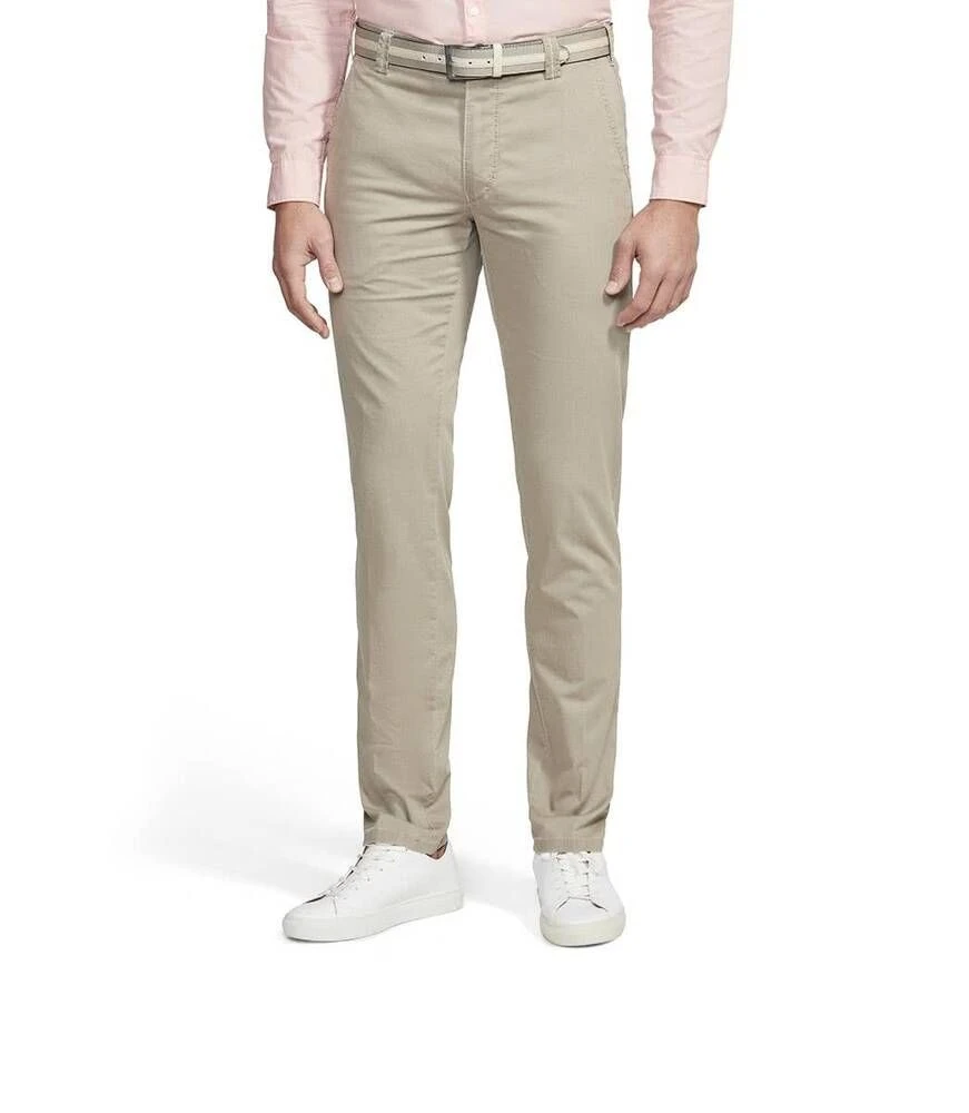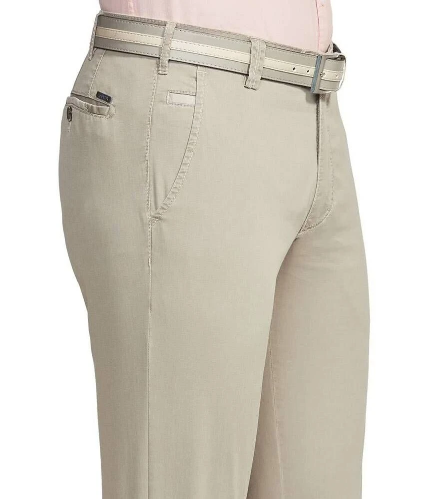Miesten tyylikkäät puuvillahousut etu- ja takataskuilla. Joustava materiaali parantaa istuvuutta ja lisää käyttömukavuutta.