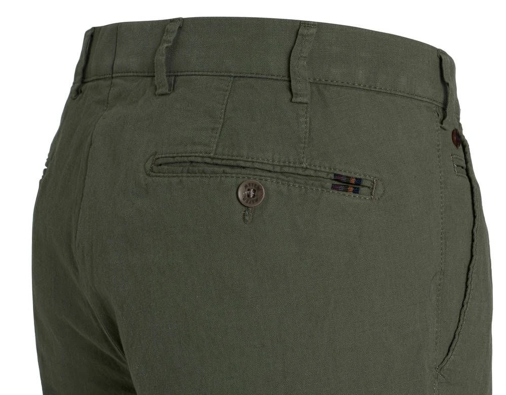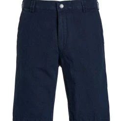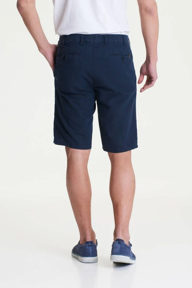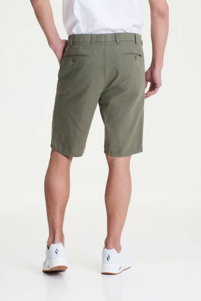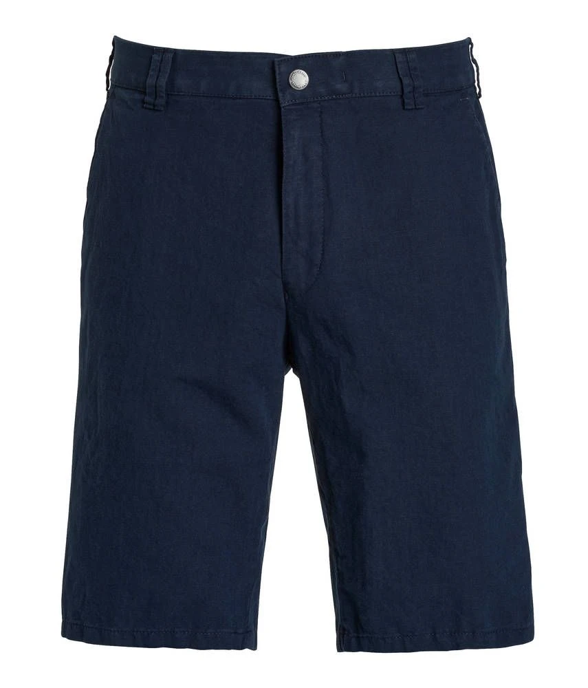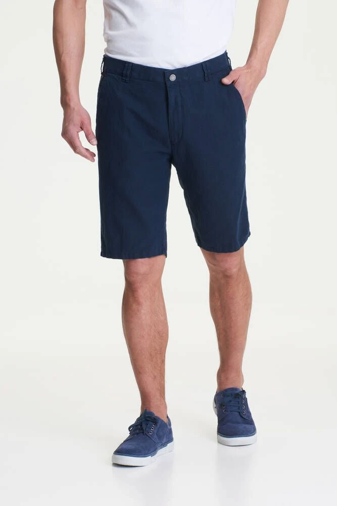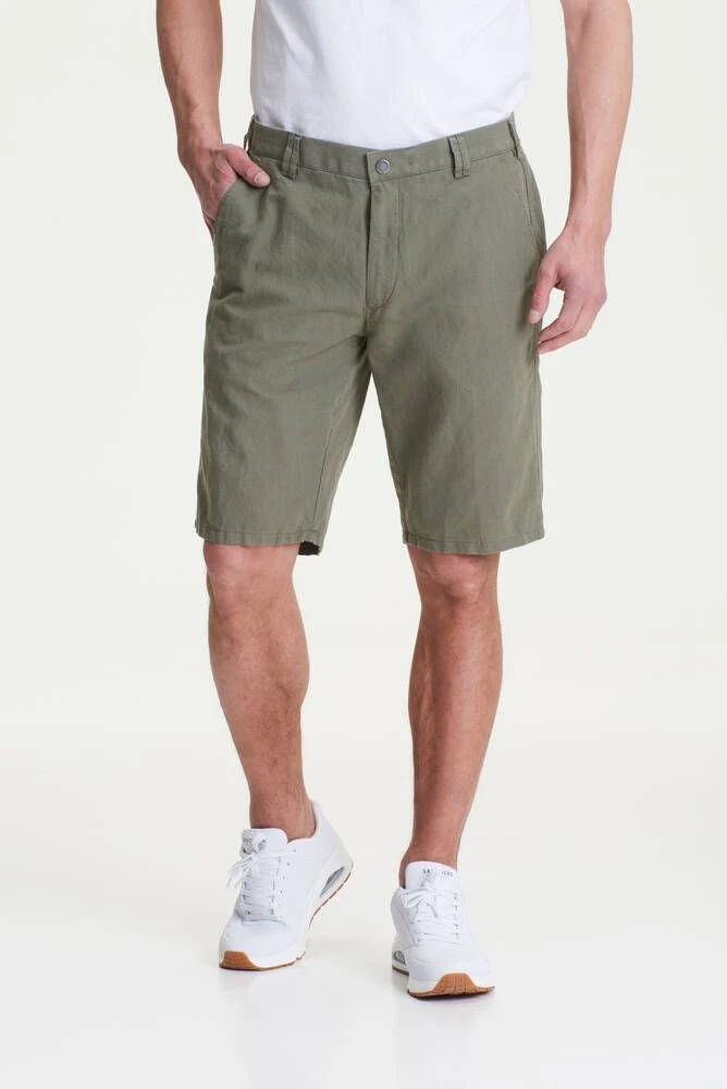 Puuvillasta ja pellavasta valmistetut yksiväriset shortsit etu- ja takataskuilla. Oikean etutaskun sisällä on pieni kolikkotasku ja vasemman etutaskun vuorikankaassa on vetoketjukiinnitteinen turvatasku. Pellava tekee shortseista miellyttävän hengittävät.