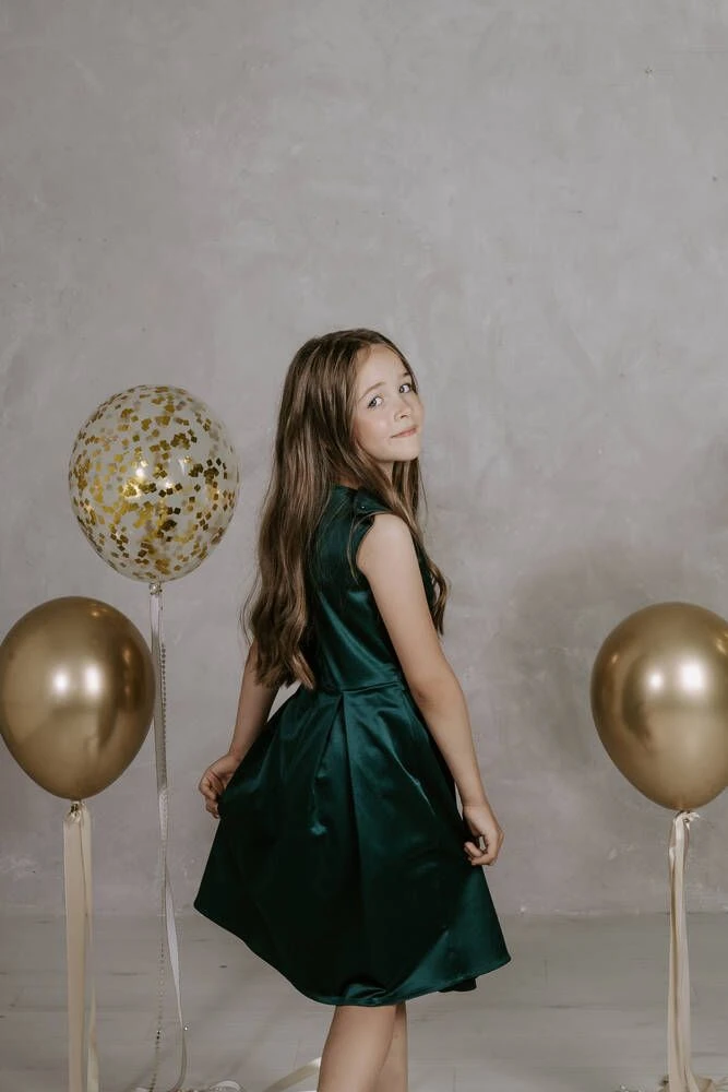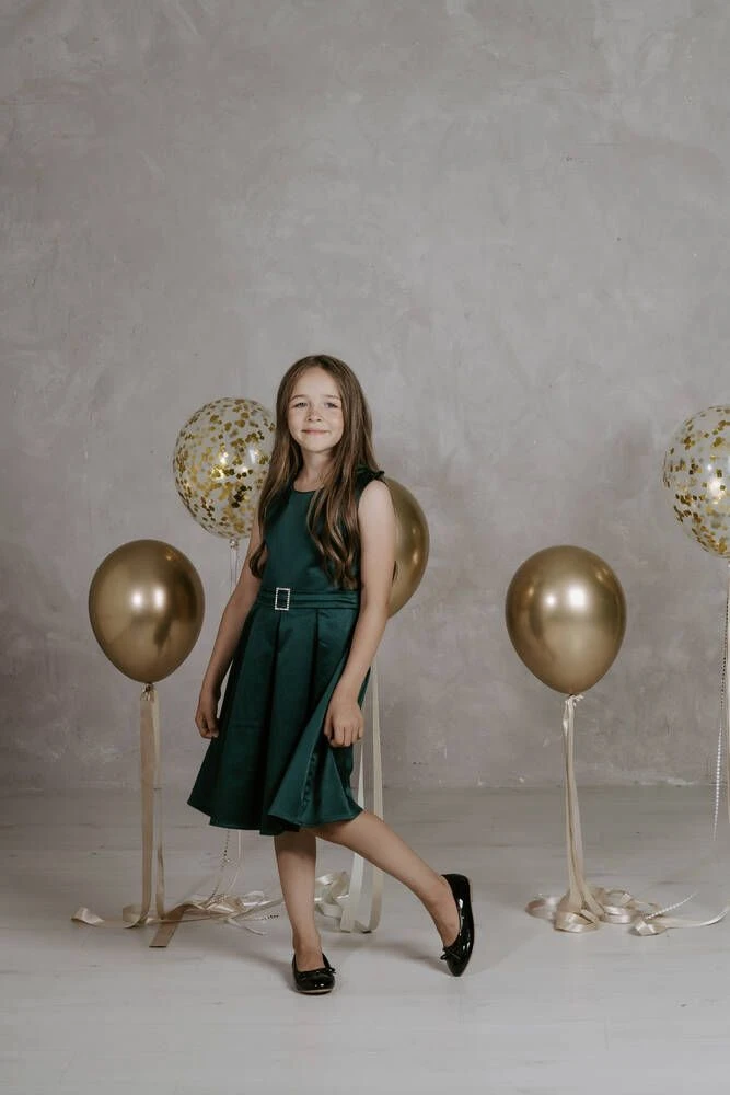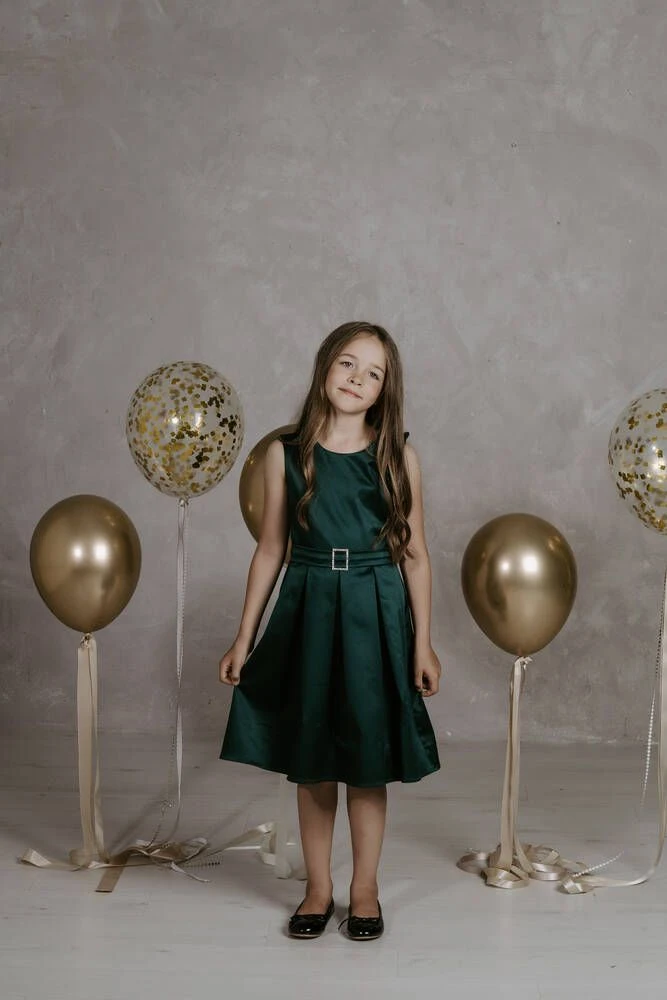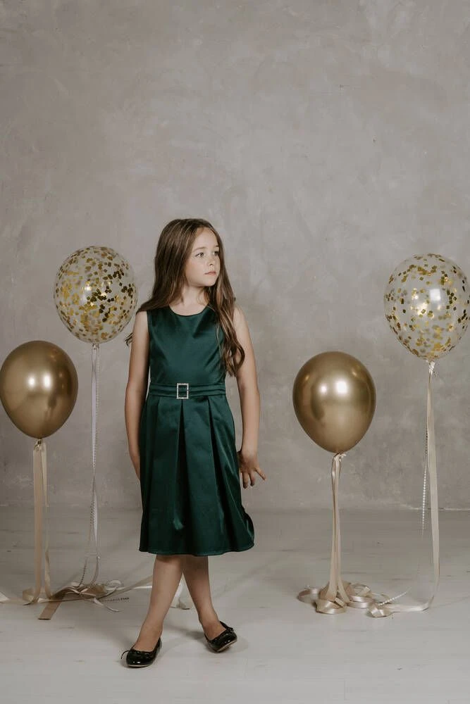 Upea satiininen juhlamekko vekitetyllä alaosalla ja koristevyöllä.