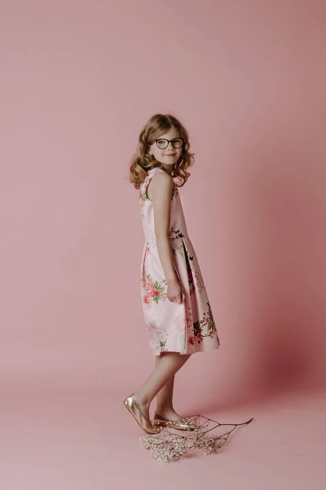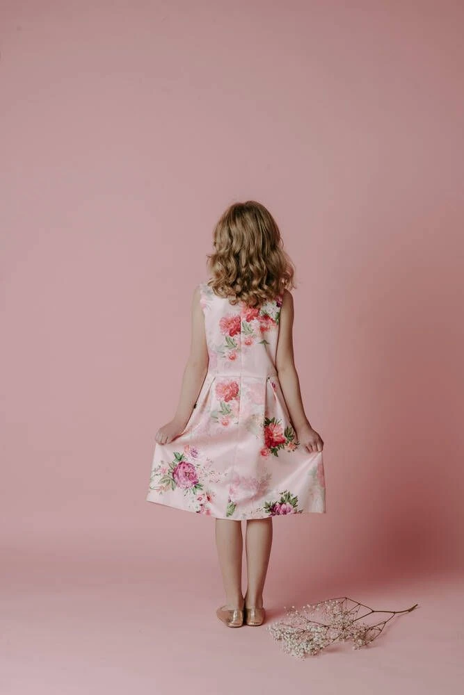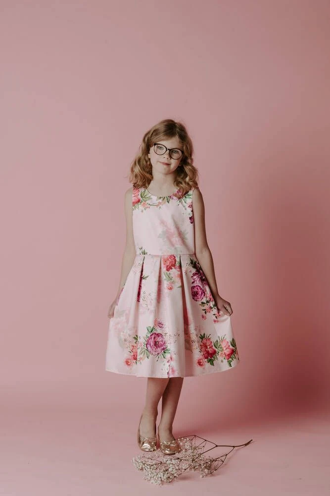 Lasten kaunis juhlamekko kukkakuosilla.
