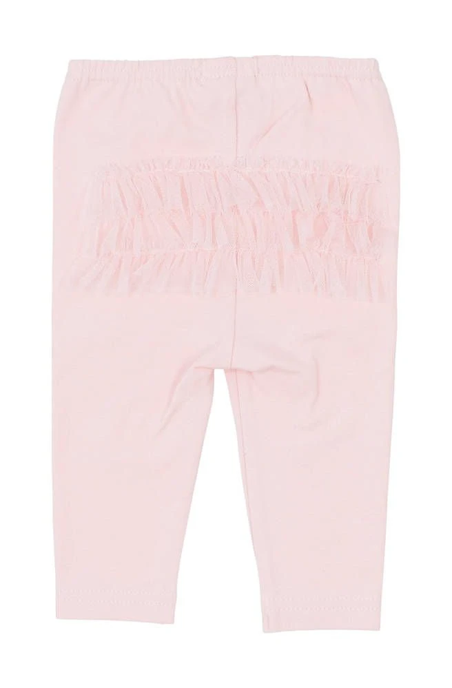Söpöt leggingsit röyhelökoristeella ja joustavalla kuminauhavyötäröllä.