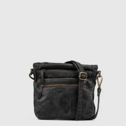 Tyylikäs nahkainen olkalaukku vetoketjullisilla taskuilla.