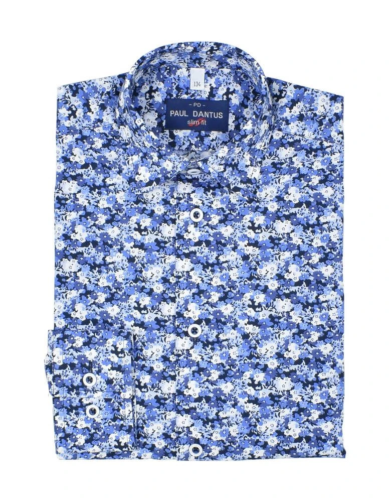 Poikien pitkähihainen slim fit-kauluspaita raikkaalla kukkakuosilla.