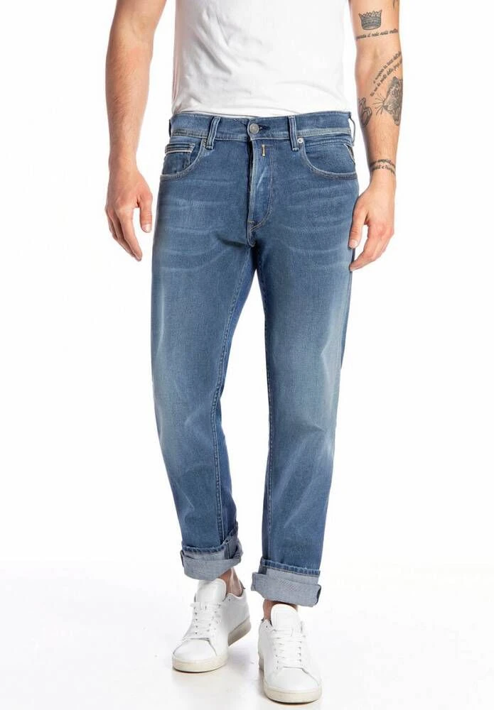 Miesten suoralahkeiset farkut etu- ja takataskuilla.