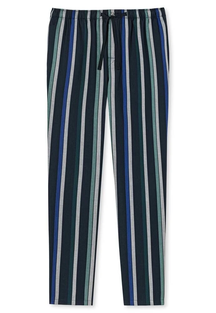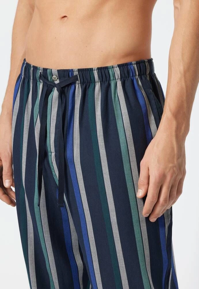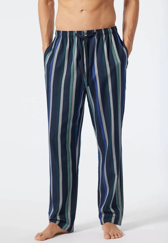 Pystyraidalliset pyjamahousut taskuilla ja kiristettävällä vyötärönauhalla.
