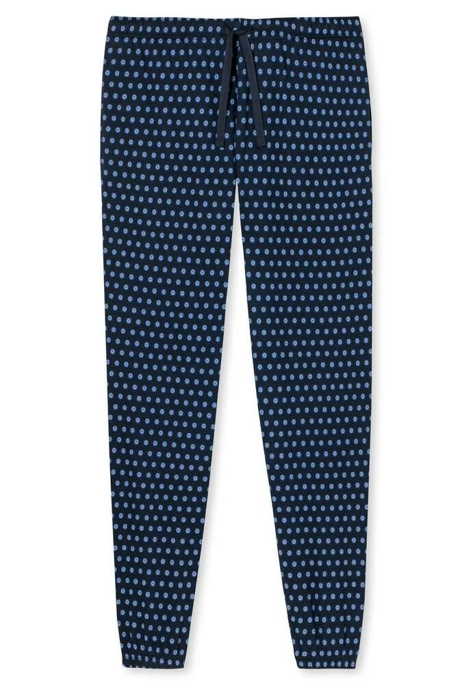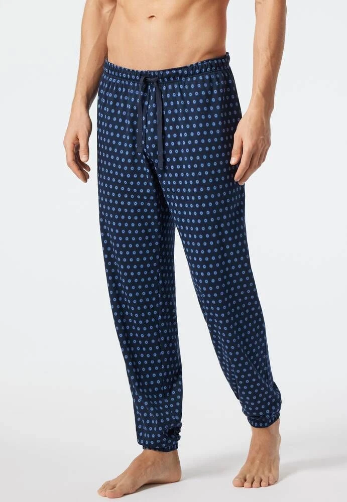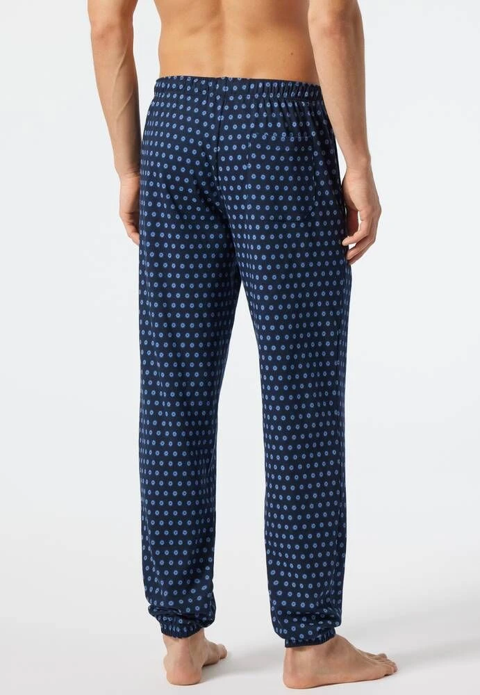 Puuvillaiset pyjamahousut kuosilla. Housuissa on vyötäröllä kiristysnauha.