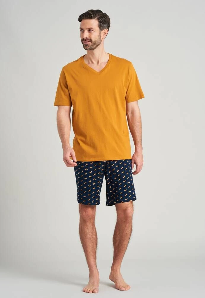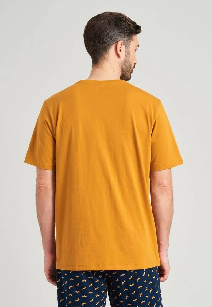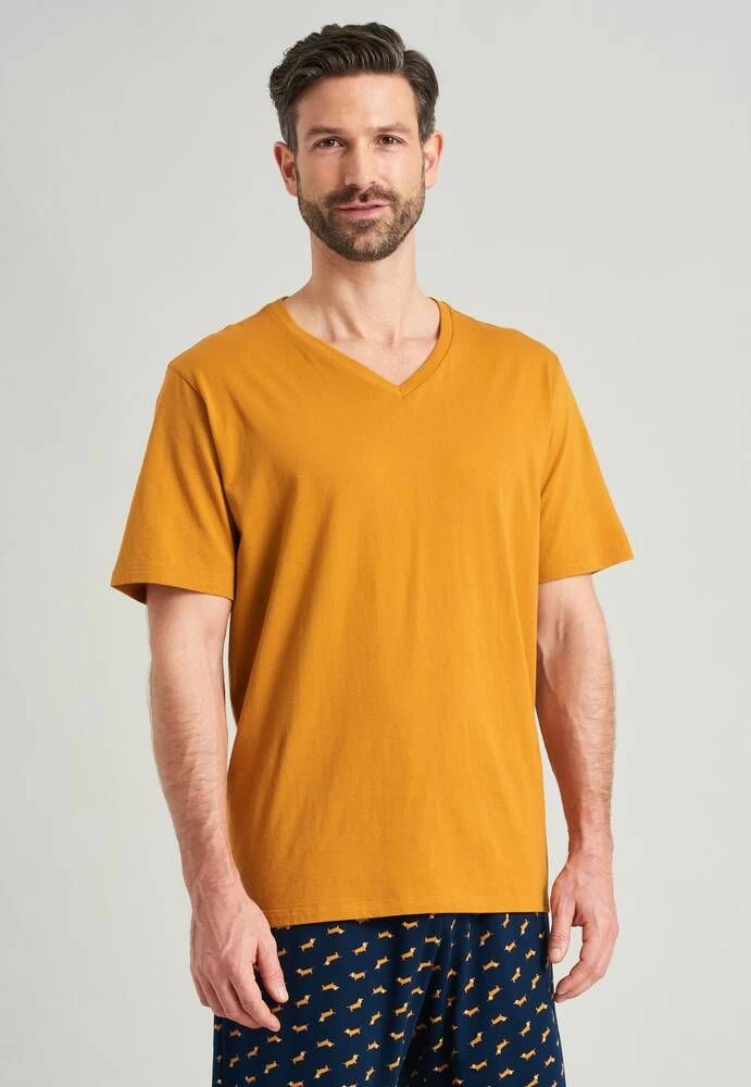 Yksivärinen puuvillapaita lyhyillä hihoilla ja V-pääntiellä.