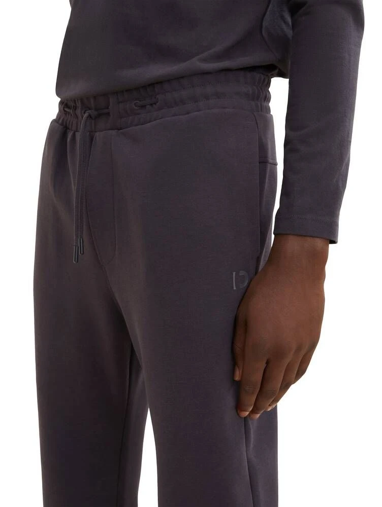 Miesten rennot collegehousut kapenevilla lahkeilla. Lahkeensuissa on leveät ja joustavat resorit ja vyötäröllä solmittava kiristysnauha.
