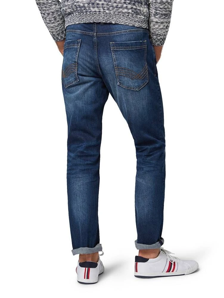 Hieman joustavat farkut keskisinisellä kulutuspesulla. Farkkujen etu- ja takapuolella on kätevät taskut.