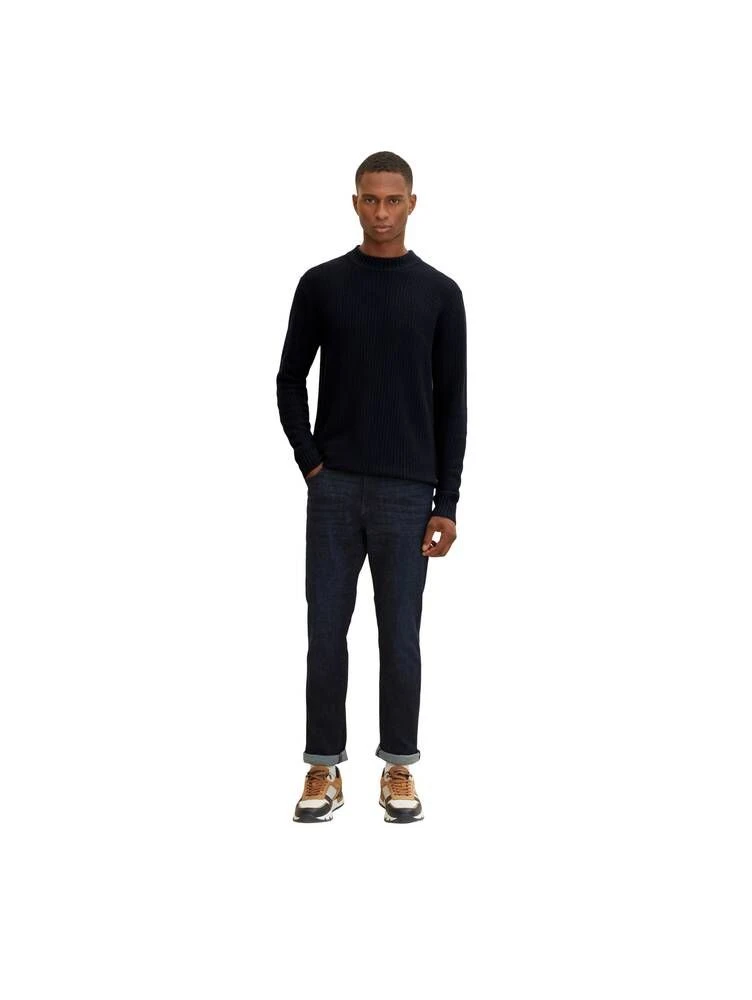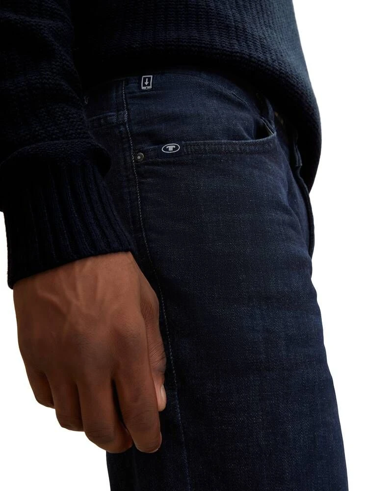 Miesten tummat farkut, joiden joustava materiaali lisää käyttömukavuutta.