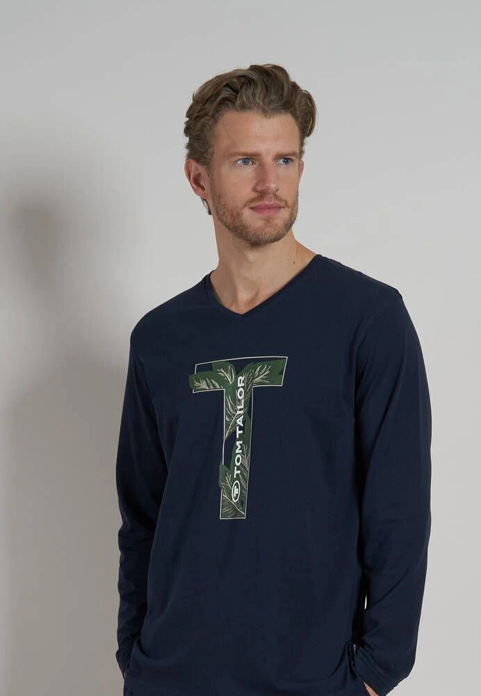 Miesten pitkähihainen pyjamapaita T-kirjaimella, jossa on Tom Tailor teksti.