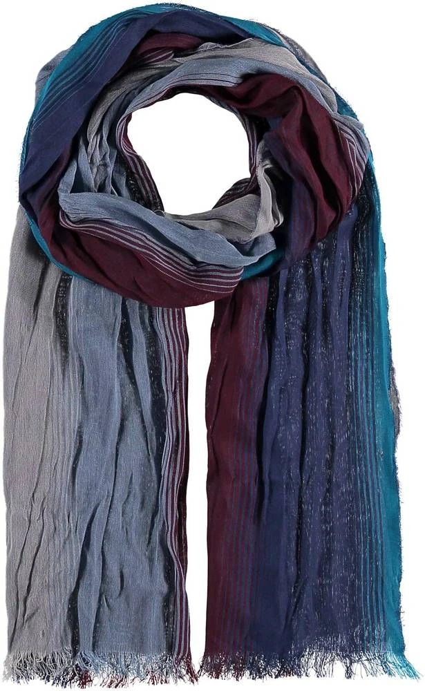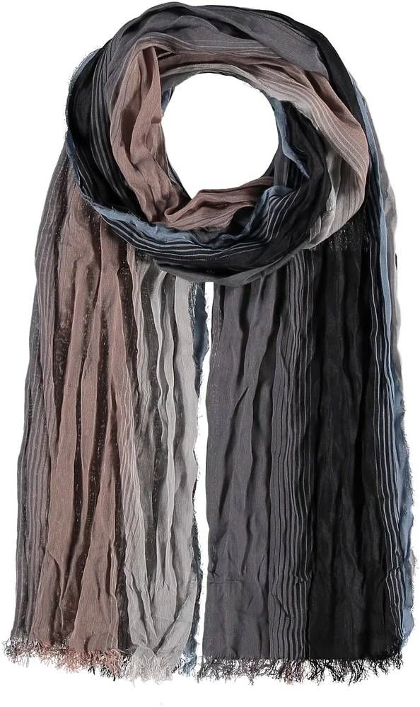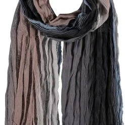 Kevyt rypytetty raitahuivi leikatuilla lyhyillä hapsuilla.