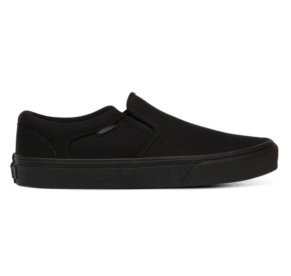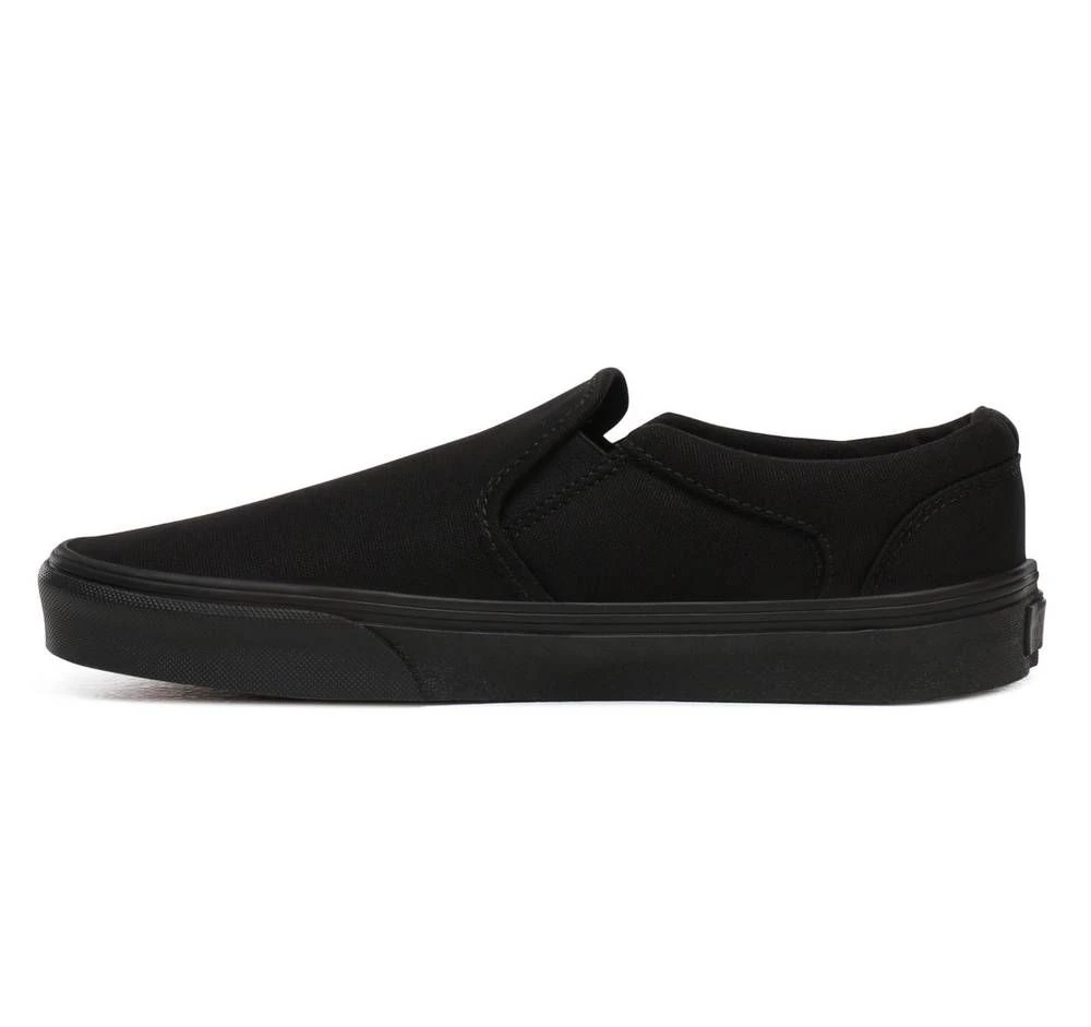 Vansin slip-on tennarit tekstiilipinnalla. Sivuilla olevat venykkeet helpottavat tennareiden jalkaan pukemista.