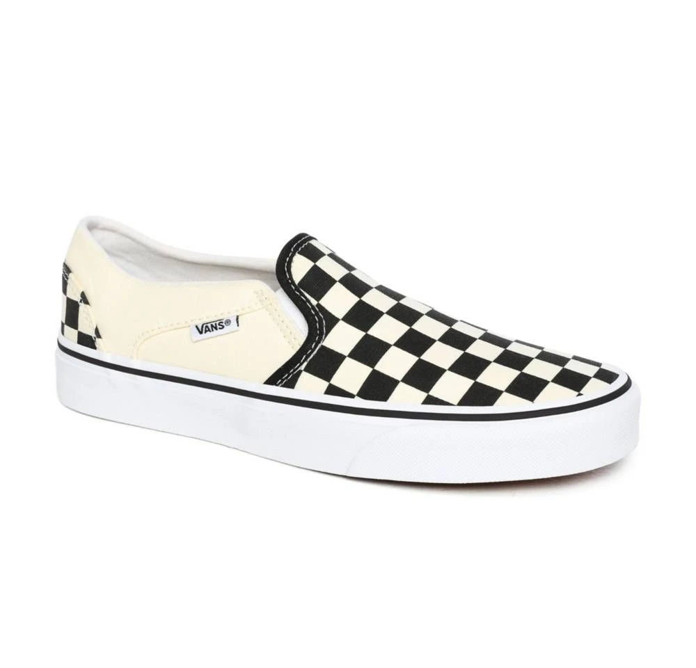 Vansin rennot slip-on tennarit ruutukuosilla. Sivuilla olevat venykkeet helpottavat tennareiden jalkaan pukemista.