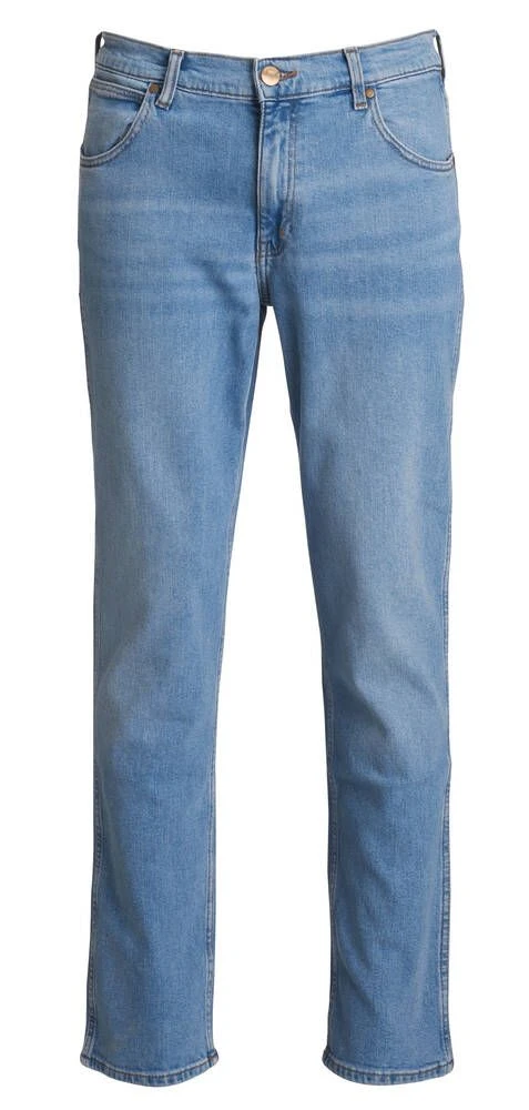 Miesten vaaleat farkut suorilla lahkeilla. Joustava materiaali lisää käyttömukavuutta ja parantaa farkkujen istuvuutta.
