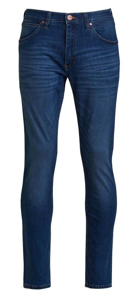 Kulutetut farkut etu- ja takataskuilla sekä kapeilla lahkeilla. Joustavissa farkuissa on lisäksi myös joustava vyötärönauha, joka takaa käyttömukavuuden ja hyvän istuvuuden.