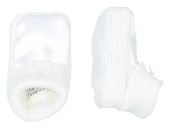Pienet kastetossut, jotka on valmistettu pehmeästä neuloksesta sekä päällipuolen satiinista. Varressa on suloinen rusettikoriste.